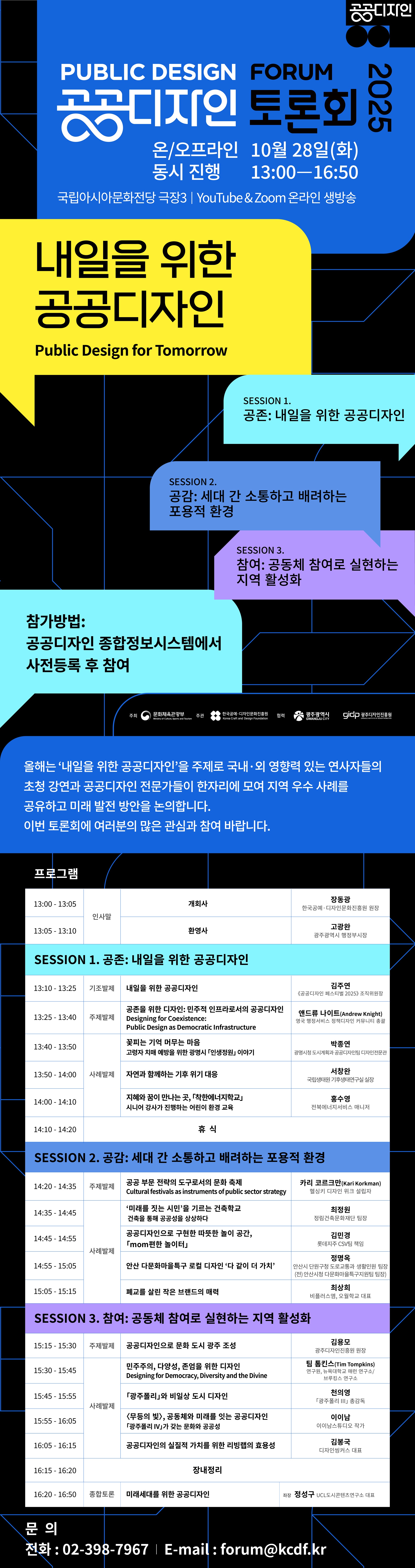 [2025 공공디자인 토론회] 10월 28일(수) 온라인 · 국립아시아문화전당 개최